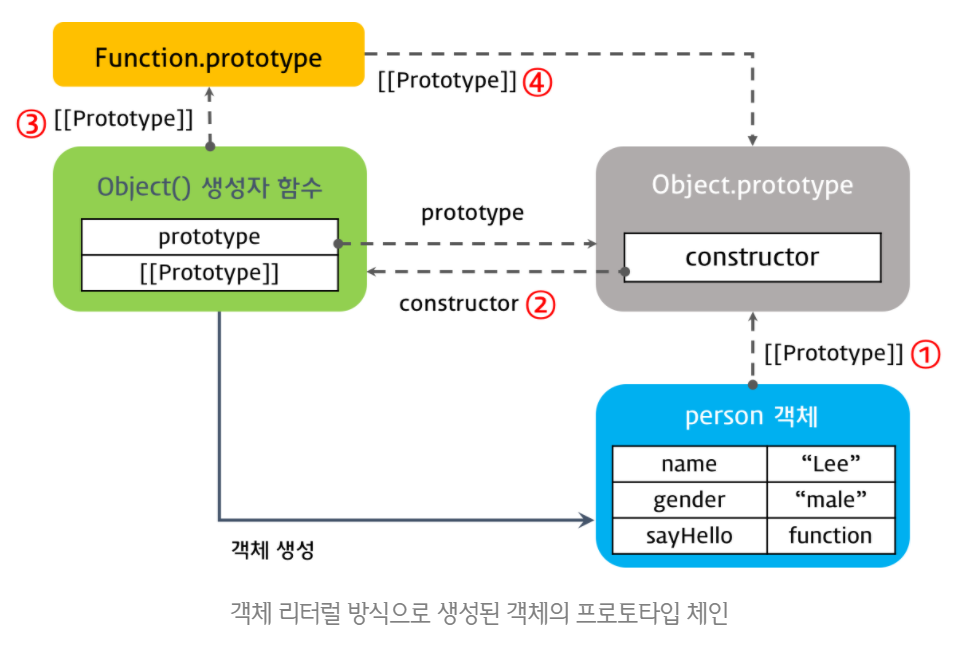 ⇒ 객체 리터럴로 객체를 생성한 경우, 프로토타입 객체는 Object.prototype이다.