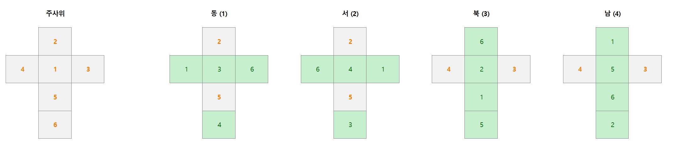 사실, 주사위의 변화 파악만 하면 구현은 크게 차이가 없을 것 같다.