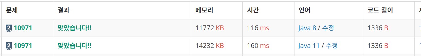 | [백준 Gold 1] 2098 외판원 순회 - Java (0) | 2021.12.22 |