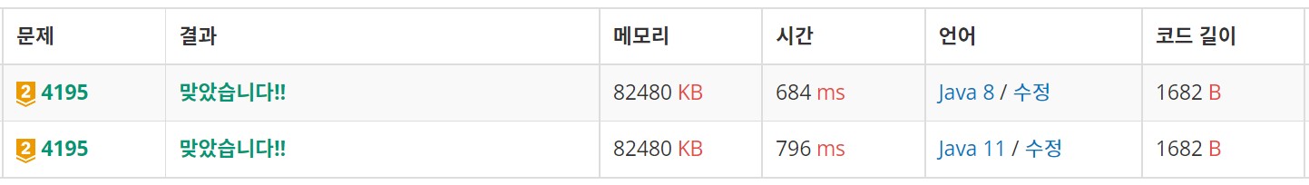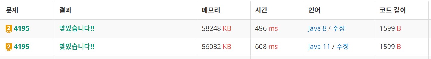 속도는 배열을 사용한 풀이가 더 빨랐다.