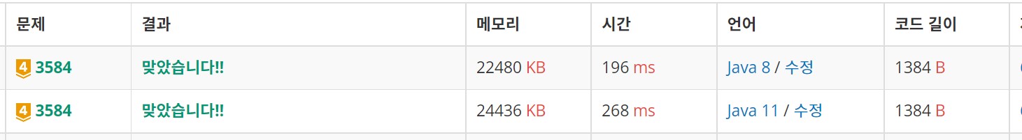 | [백준 Gold 4] 1939 중량제한 - Java (0) | 2022.01.01 |