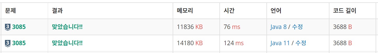 - 사탕의 개수를 계산할 때마다, 최대값을 갱신하여 리턴.
